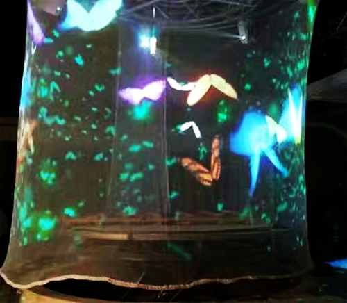 幻影成像系統(tǒng)也稱虛擬成像是基于“實景造型”和“幻影”的光學成像結合,將所拍攝的影像(人、物)投射到布景箱中的主體模型景觀中,演示故事的發(fā)展過程。繪聲繪色,虛幻莫測 ……